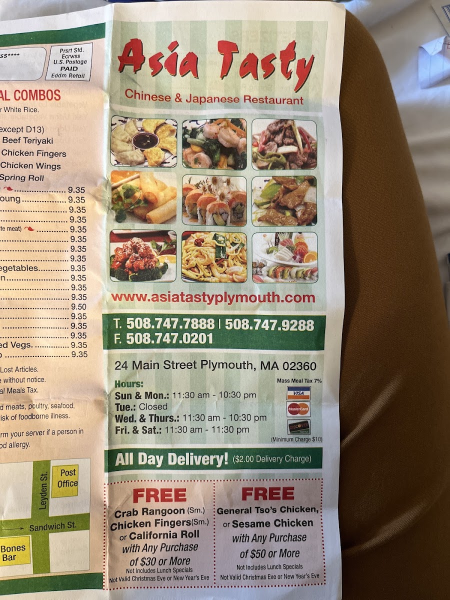 The menu at Asia Tasty offers a straightforward and approachable selection of Asian dishes, blending familiar Chinese classics with a few Japanese-inspired options. It’s the kind of menu that suits casual meals—whether you’re picking up a quick takeout, enjoying a simple lunch, or settling in for an easy dinner at their modest dining area.
